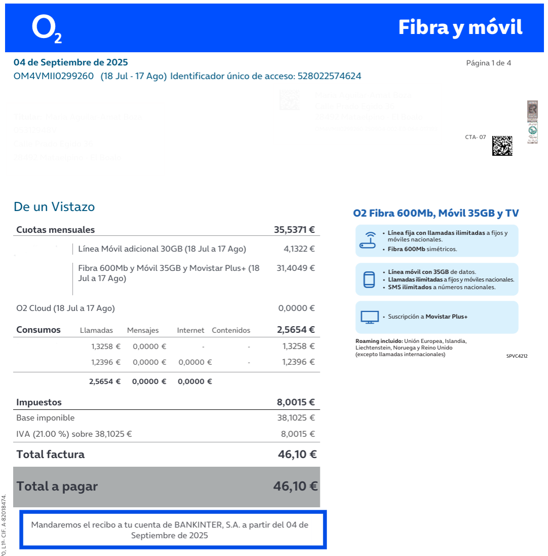 Si necesitas información sobre tu primera factura de O2, entra aquí.